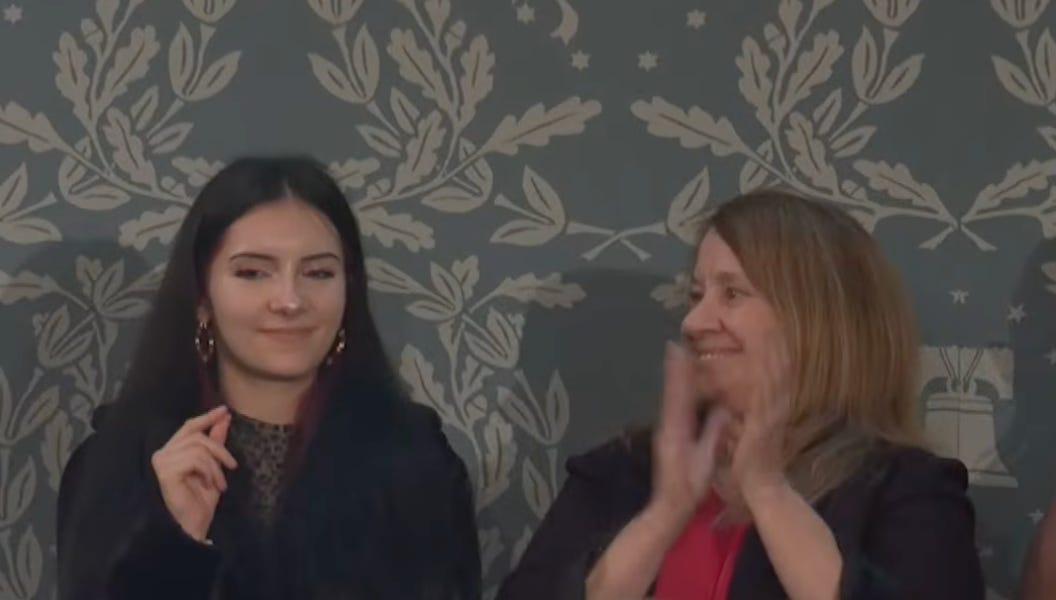 Nearly an hour into his State of the Union address last night, after lying about our economy, our national mood, and the impact of tariffs, President Trump told a story about a young woman, Sage Blair, and her legal guardian, her grandmother Michele—who were both in attendance. The story sounded too crazy to be true, but it was true.